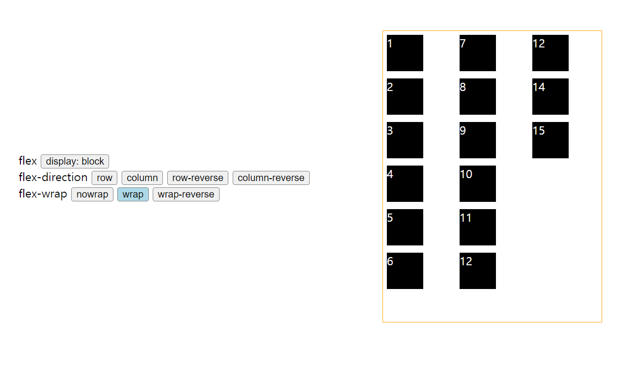 직접 찍어보니 flex-direction은 가로 줄 내에서 순서가 바뀌고, flex-wrap은 세로 줄들의 순서가 바뀐다.