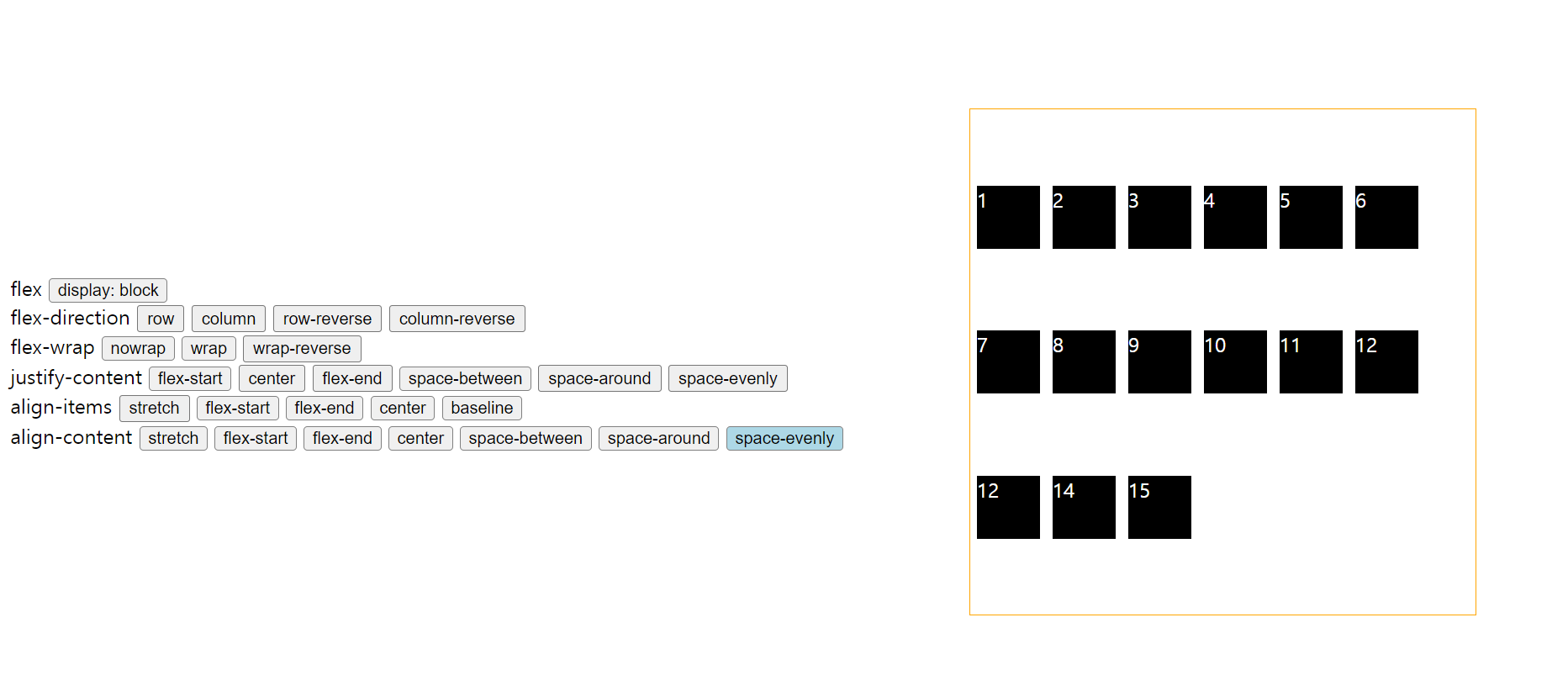 7. [f47fc70] | 220730 PracticeCSSFlex | Feat: add buttons to change container's align-content property: stretch, flex-start, flex-end, center, space-between, space-between, space-evenly