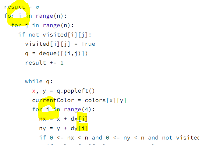 elif colors[nx][ny] == 'G' and currentColor == 'R':
