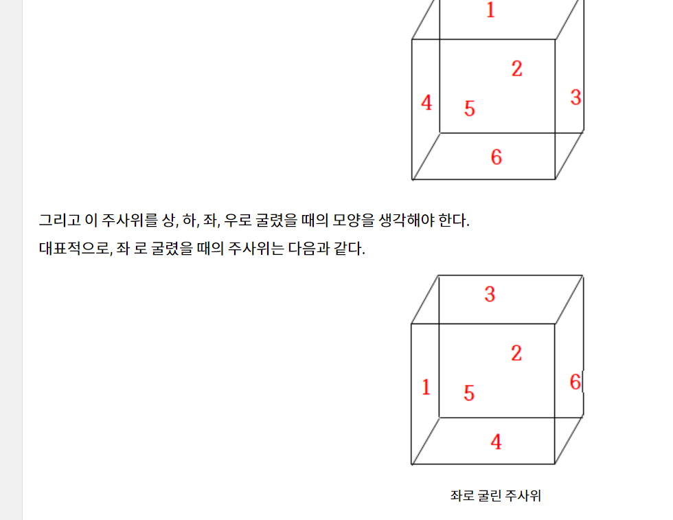 이 비슷한 문제 풀어봤던 것 같아서 주사위 상태를 저장할 생각도 했던 것 같은데,
