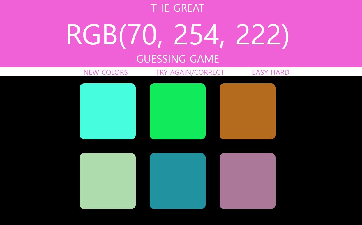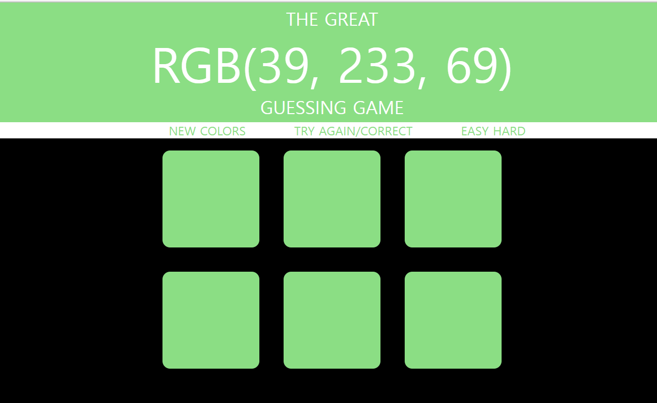 시작 버튼을 누르거나 난이도를 바꾸면 새로운 랜덤 넘버를 만들어 정답 값과 나머지 박스 색을 바꾸는 작업 중이었습니다.