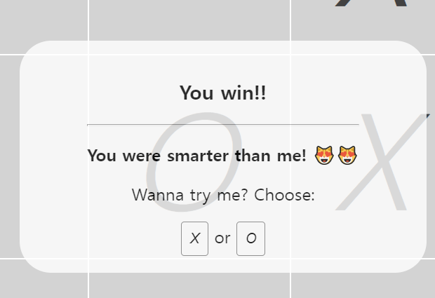 popUpStrongMessage.textContent = 'You were smarter than me! 😻😻'