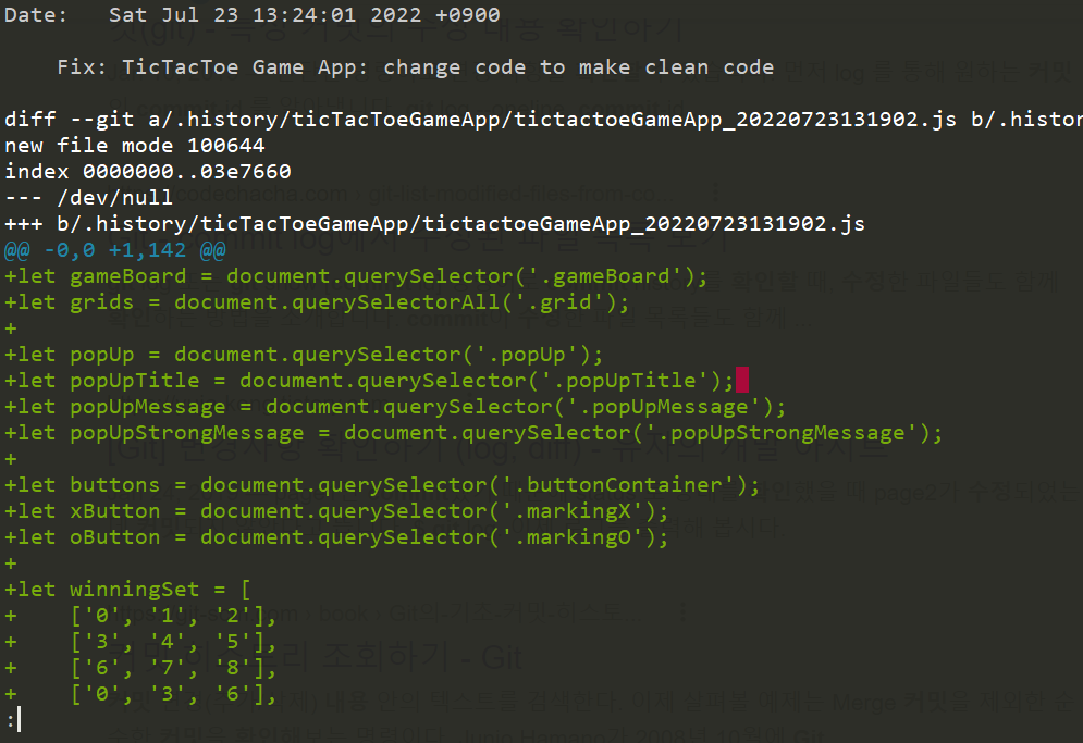 중복되는 코드 제거, 코딩 중 디버깅을 위한 console.log("xxx") 제거, 공백 정리, 변수/함수 위치 조정을 했습니다.